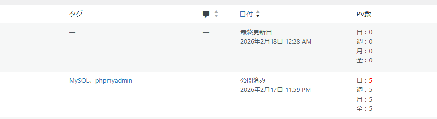 投稿一覧の画面にPV数を表示することができました。